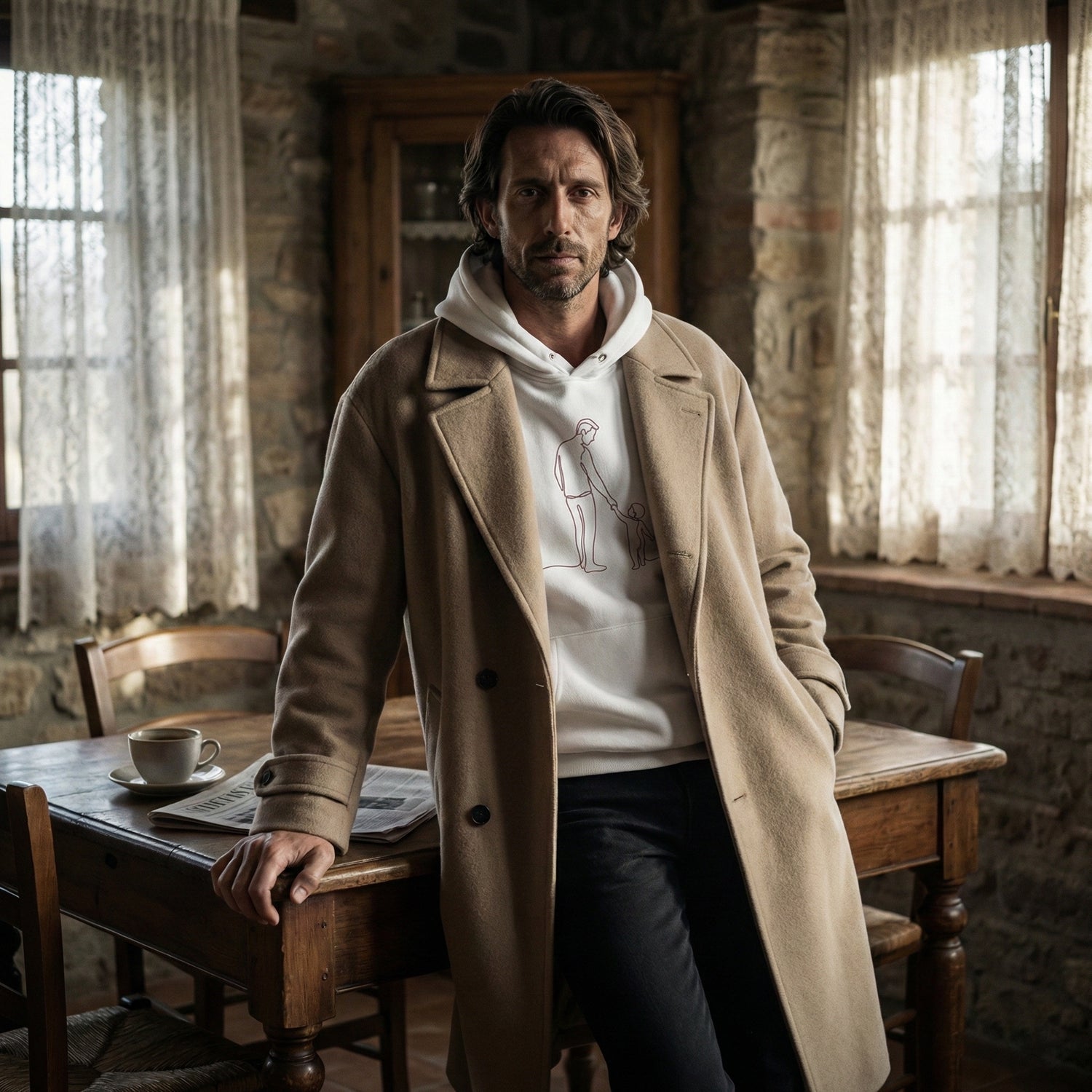 "The Unspoken. Shadows, lines, and silent pacts. We don't print illustrations; we craft visual enigmas. Designed for the men who understand that earning the title of 'father' is the most challenging art form in existence. Art that speaks when words fail."